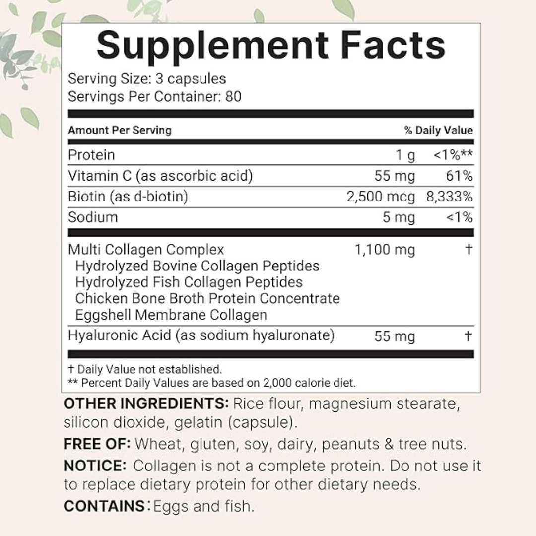 🌿 5-Type Collagen Blend: Powered by Types I, II, III, V & X plus Biotin, Hyaluronic Acid, and Vitamin C for total-body rejuvenation