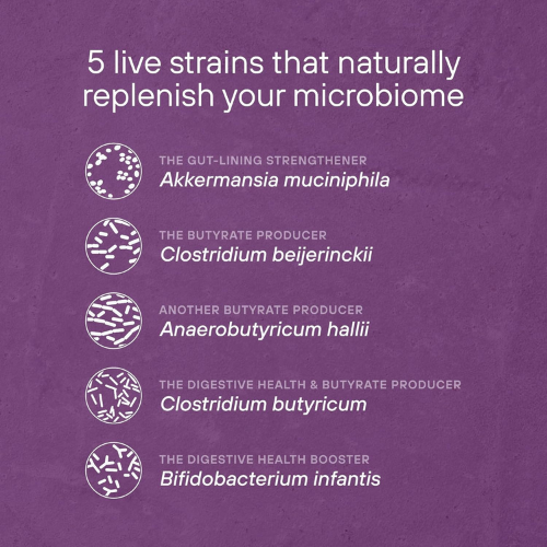 An essential bacteria strain that strengthens the all-important gut barrier and produces postbiotics for digestive and metabolic health.
